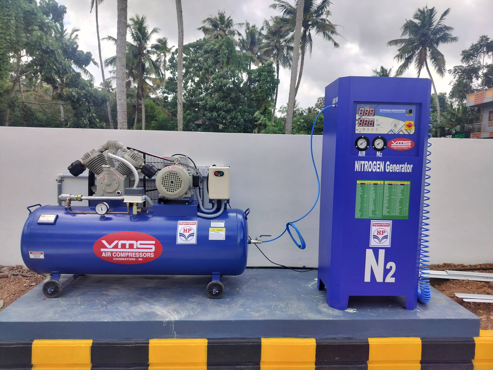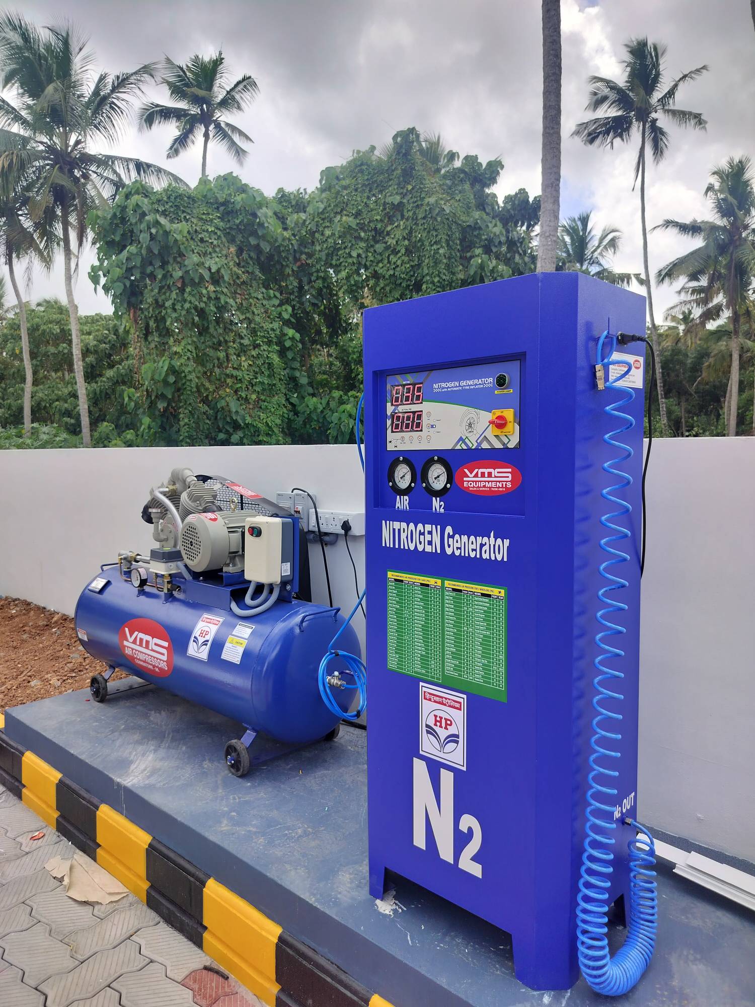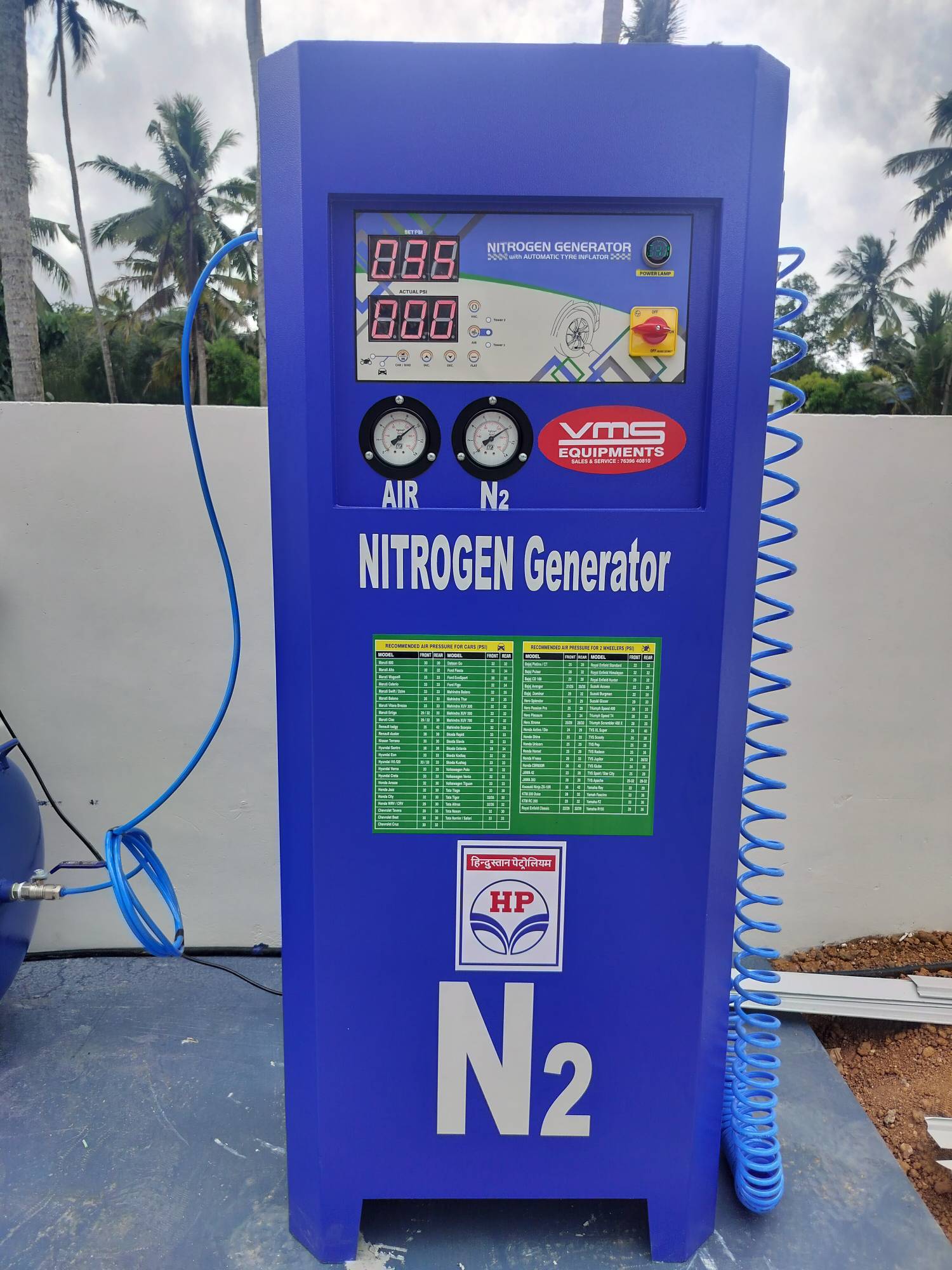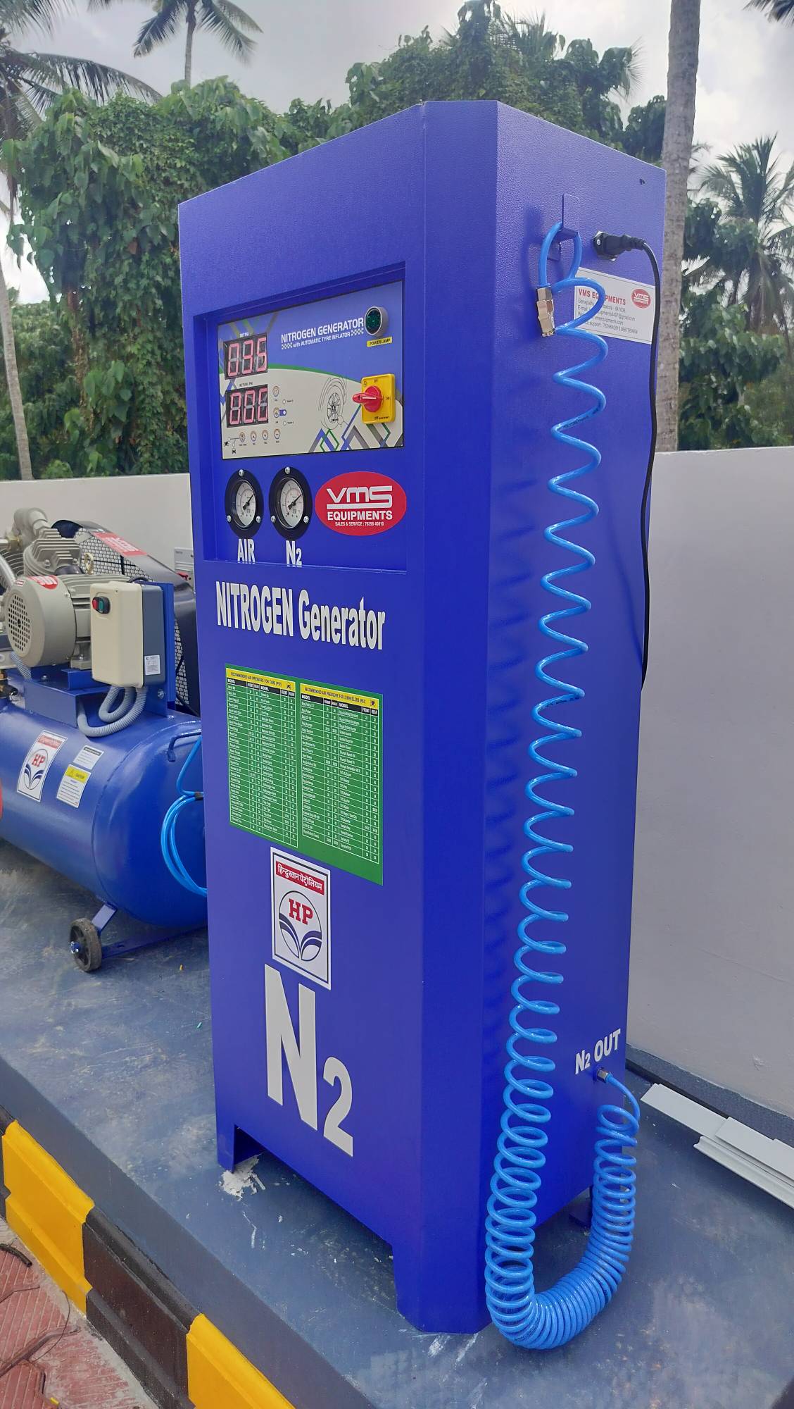 it's a online model to convert a normal air into nitrogen A nitrogen machine, also known as a nitrogen inflator or generator, is a device that extracts and purifies nitrogen gas from ambient air, typically using methods like Pressure Swing Adsorption (PSA) or membrane separation, for inflating vehicle tires. Here's a more detailed breakdown: How it works: Nitrogen Generation: The core of the machine is a nitrogen generator that separates nitrogen from air. PSA or Membrane Separation: It uses either Pressure Swing Adsorption (PSA) or membrane separation technology to extract nitrogen, removing oxygen and other impurities. Filling Process: Once generated, the high-purity nitrogen gas is then fed into the tire using a hose and nozzle, allowing for precise control of inflation pressure. Benefits: Nitrogen-filled tires are claimed to offer benefits like better pressure retention, reduced fuel consumption, and improved tire life. Types of Nitrogen Machines: PSA (Pressure Swing Adsorption): This method uses a process where air is compressed, then passed through a bed of adsorbent material that selectively captures oxygen, leaving behind nitrogen. Membrane Separation: This method uses a membrane with tiny pores that allow nitrogen molecules to pass through while blocking oxygen and other gases. Digital Nitrogen Tyre Inflator: These machines are fully automatic, with features like vacuum facility and automatic speed control, suitable for various vehicle types. Applications: Automotive Industry: Primarily used for inflating vehicle tires, offering potential benefits like improved tire life and fuel efficiency. Industrial Applications: Nitrogen gas has various industrial uses, including providing an inert atmosphere for storage and transportation of certain materials, and preventing oxidation and corrosion.